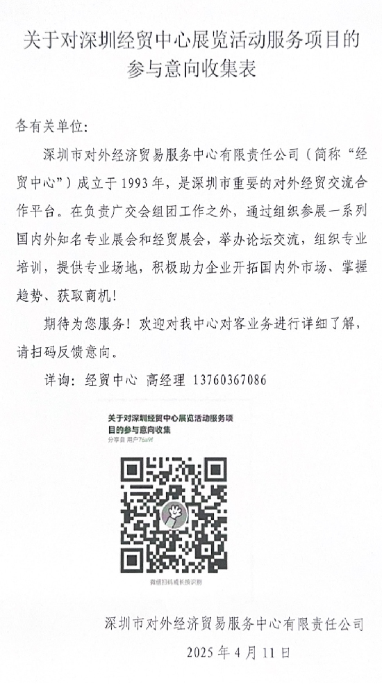 关于对深圳经贸中心展览活动服务项目的参与意向收集表