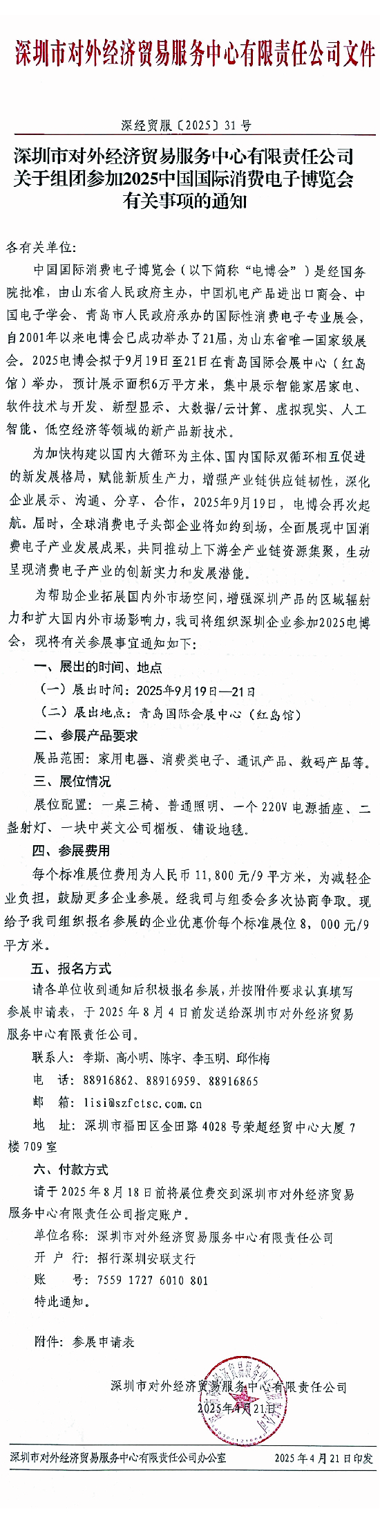 关于组团参加2025中国国际消费电子博览会有关事项的通知